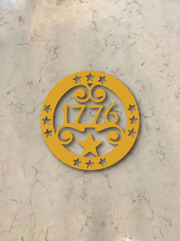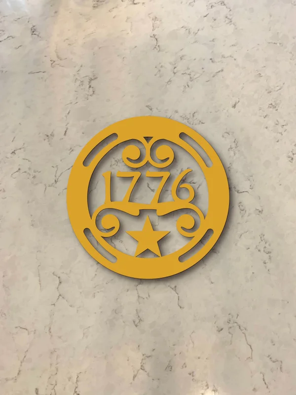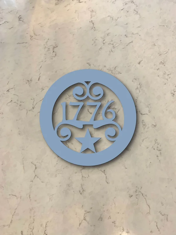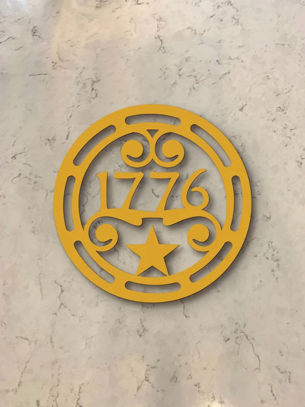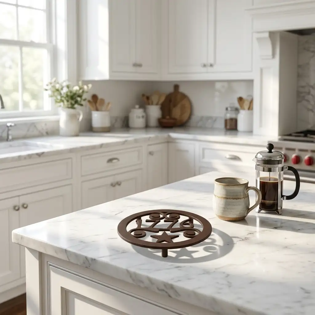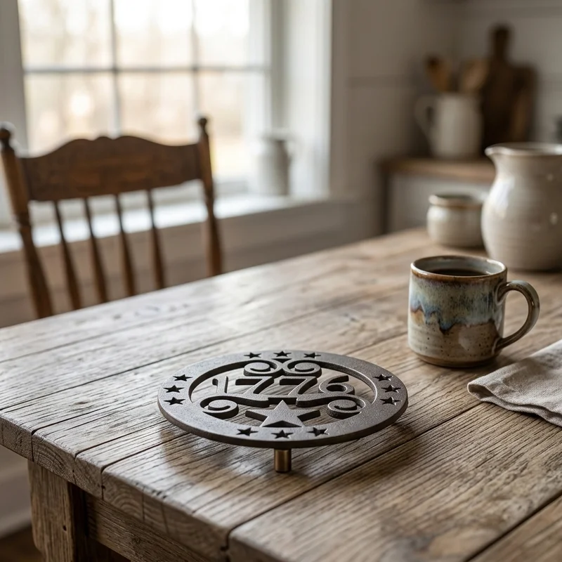 Featuring the pivotal year 1776, a proud five-pointed star, and ornate, era-appropriate scrollwork, this heavy-duty steel hot pad isn't just a kitchen accessory—it's a tribute to American heritage. Its vintage aesthetic and classic ornamentation make it a striking focal point for Traditional, Farmhouse, and Southern Traditional kitchens.