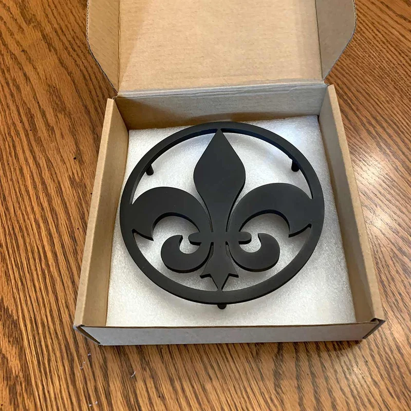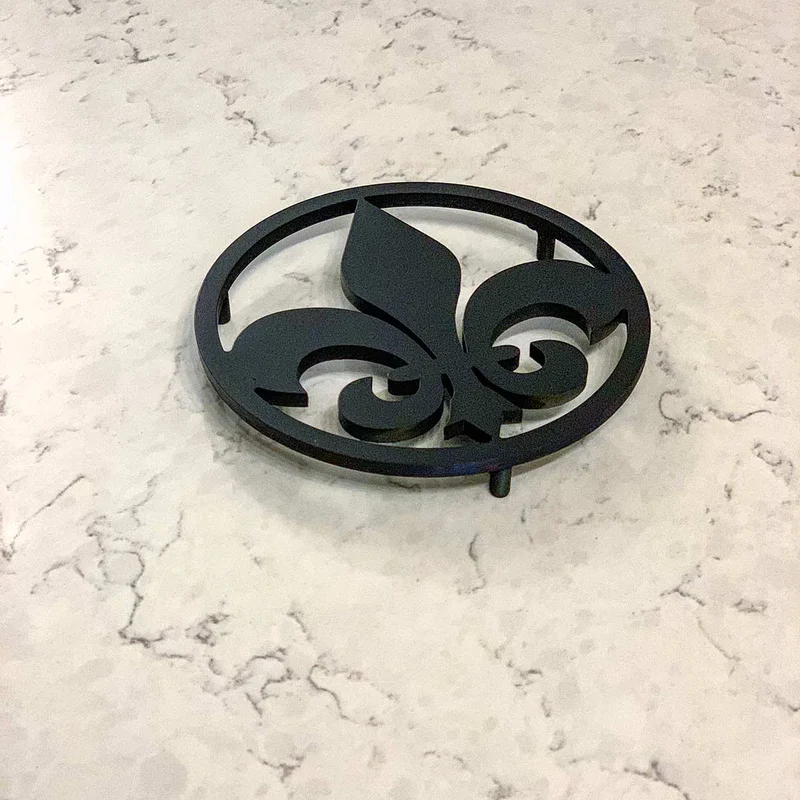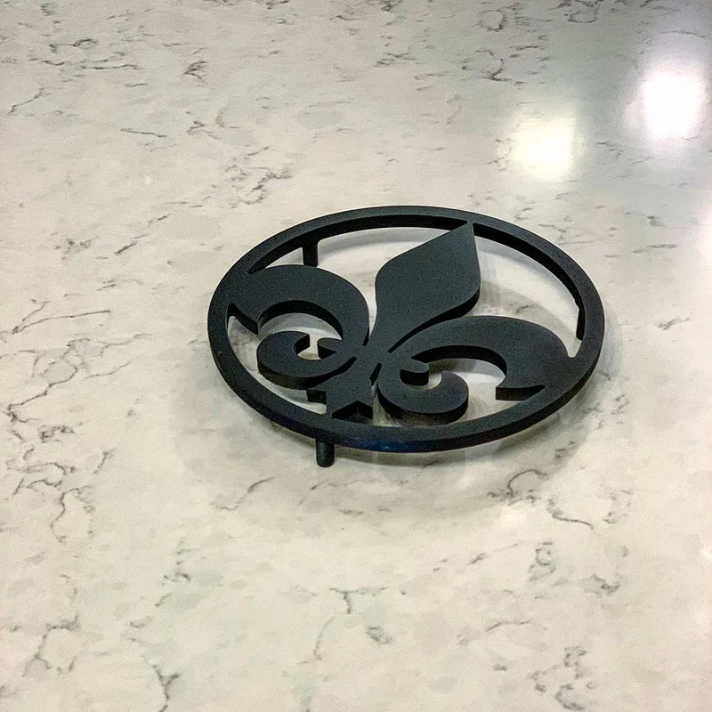 Laser cut from solid 1/4" steel, this 5.9-inch trivet stands strong on 1/4" thick legs, with rubber feet that raise it 1/2" for proper airflow and protection. Whether you're serving hot gumbo straight from the stove or dressing up your kitchen with classic NOLA flair, this piece blends function and elegance with ease.