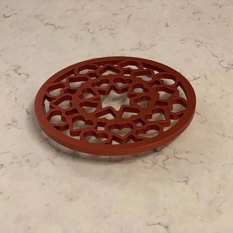 Crafted from durable metal and precision laser cut, this romantic trivet features an intricate heart design, making it as functional as it is meaningful. Whether it’s holding a hot dish during an anniversary dinner or serving as a beautiful centerpiece, it’s sure to be a cherished keepsake for years to come.
