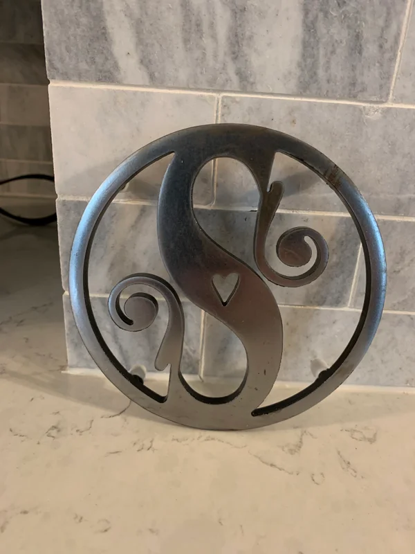 Add a touch of elegance and personalization to your kitchen with our Optima Monogram Heart Series Metal Trivet! Designed for both beauty and functionality, this trivet is available in all 26 letters of the alphabet, allowing you to customize your space with a meaningful initial.