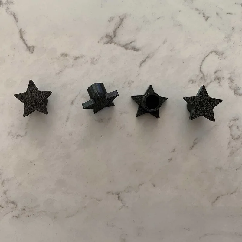 Protect your surfaces in style with these star-shaped 3D printed trivet feet protectors! #### 🔥 Key Features: * Added Stability – Not only stylish, but these feet also increase the trivet’s footprint, improving stability on flat surfaces. * Includes Extra! – While our trivets follow the standard 3-leg system, each order comes with 4 trivet feet protectors for added convenience. * Available in Two Sizes – Choose from 1/4" and 1/2" sizes to fit different trivet legs. (All Trivet Creator trivets currently use 1/4" legs.) * Flexible Fit – A relief cut allows for slight expansion, accommodating legs with extra layers of paint or minor size variations. * Surface Protection – Prevents scratches and scuffs from metal trivet legs. * Easy to Use – Simply slide them on for a secure, snug fit. * Stylish & Functional – Inspired by our Ring of Stars series of trivets, adding a unique touch to your kitchen. Available in multiple colors to match your style. Keep your surfaces safe while enhancing your trivet’s look and stability—order your set today!