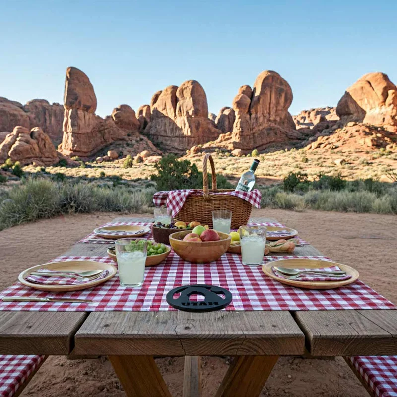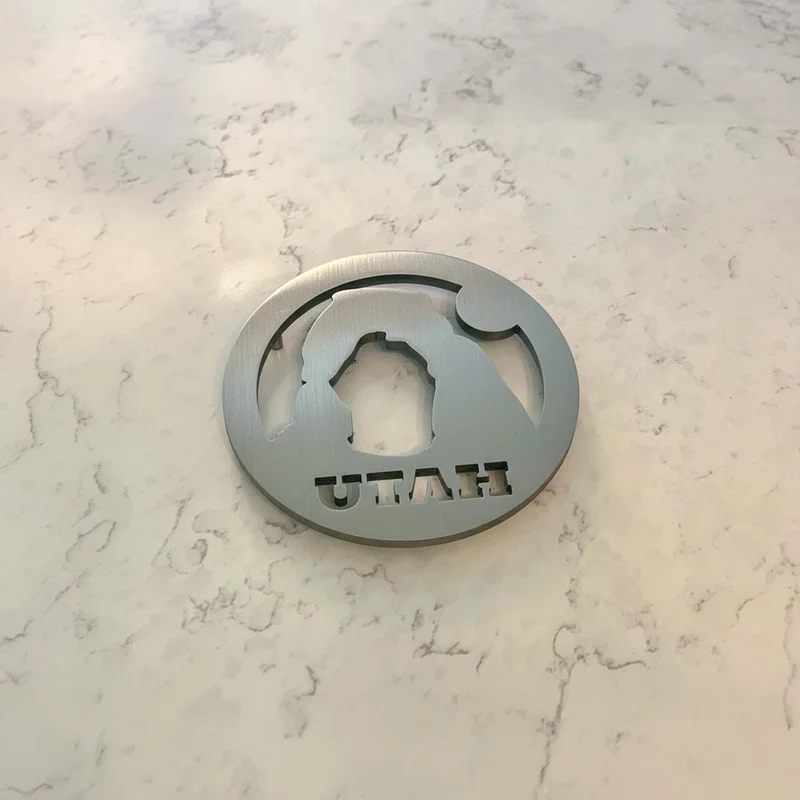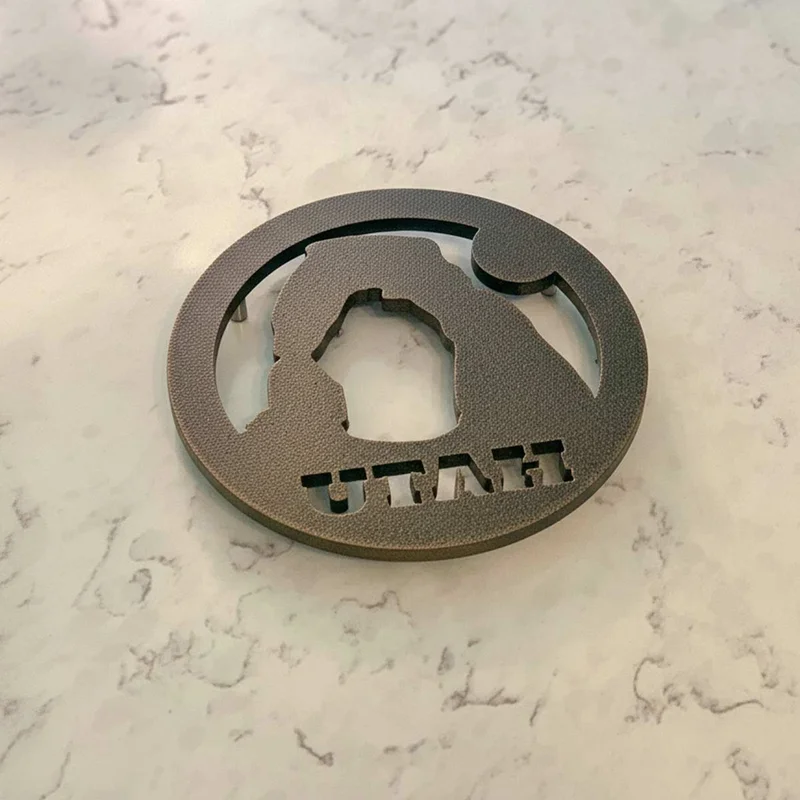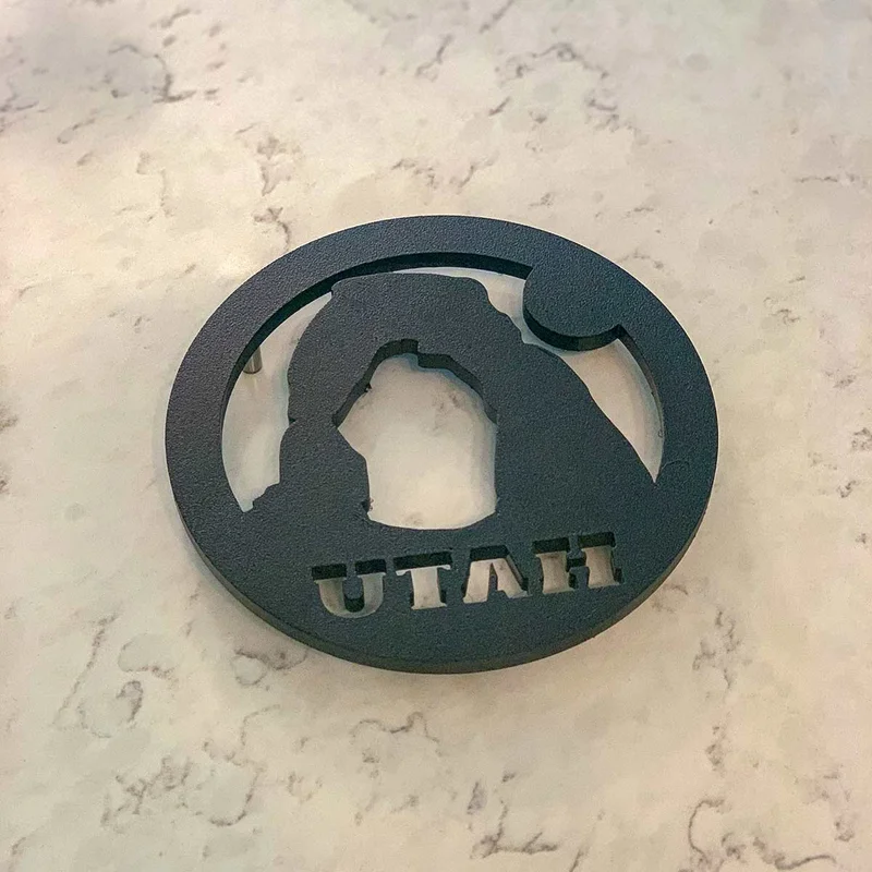 Bring the beauty of Utah’s red rock country into your kitchen with this handcrafted metal trivet featuring the iconic Delicate Arch of Arches National Park. Cut from durable steel and finished with a heat-safe coating, this piece blends function and western style in one clean, modern design.